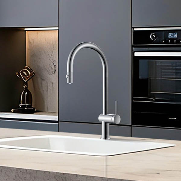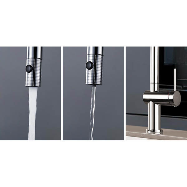 • Πατώντας το κουμπί στο ντουζάκι λειτουργείτε τη βρύση είτε σαν κανονική μπαταρία κουζίνας (ζεστό, κρύο, χλιαρό νερό), είτε έχετε άμεσα καθαρό νερό από το φίλτρο κάτω πάγκου