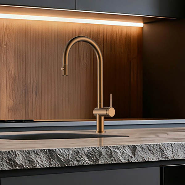 • Μπαταρία νεροχύτη πάγκου τύπου "Καμπύλη" σε PVD Rose Gold