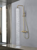 • Ρυθμιζόμενη τηλεσκοπική ορειχάλκινη βέργα ντους 2 εκροών, ύψους 95 cm έως 132 cm από την στάθμη της μπαταρίας, σε χρυσό, με επίστρωση PVD