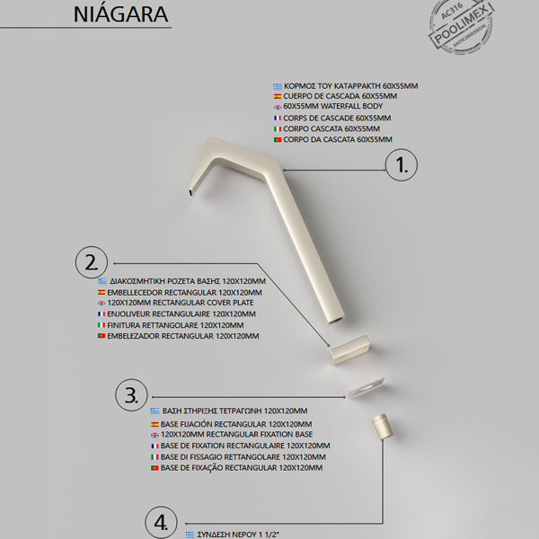 • Καταρράκτης πισίνας, εξωτερικού και εσωτερικού χώρου από ανοξείδωτο χάλυβα Inox AISI 316, σε μόκα
