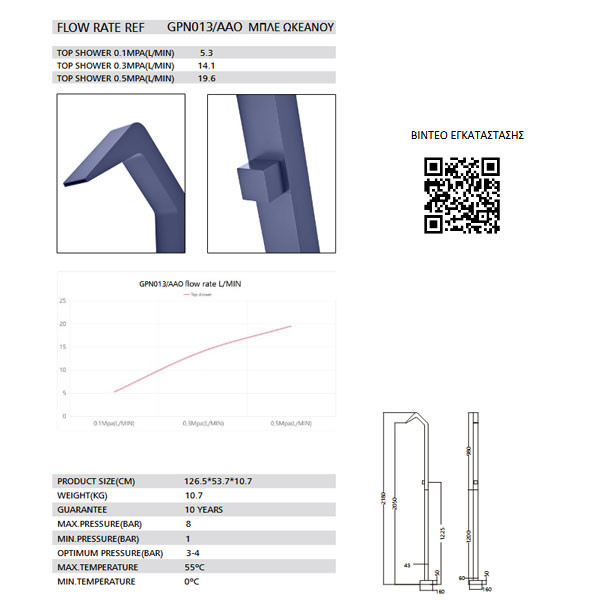Imex Niagara GPN013/AAO Inox Ocean Blue Στήλη Ντους Εξωτερικού Χώρου
