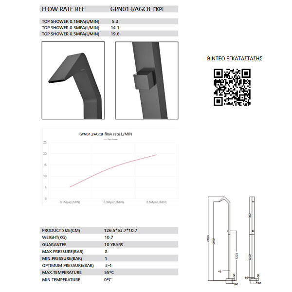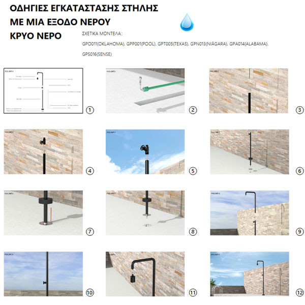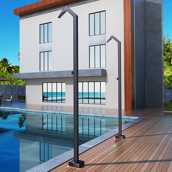 • Στήλη ντους χωρίς ανάμιξη εξωτερικού χώρου από ανοξείδωτο χάλυβα Inox AISI 316, σε γκρι