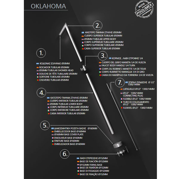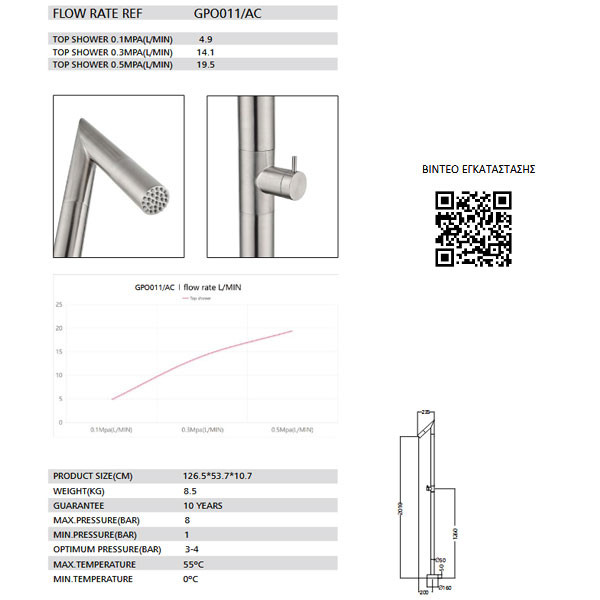 • Στήλη ντους εξωτερικού χώρου χωρίς ανάμιξη από ανοξείδωτο χάλυβα Inox AISI 316