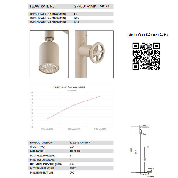 • Στήλη ντους χωρίς ανάμιξη από ανοξείδωτο χάλυβα Inox AISI 316, σε μόκα