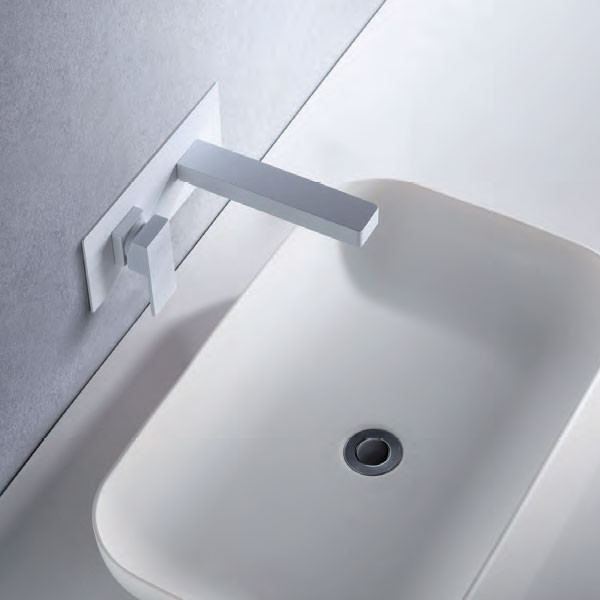 • Μπαταρία εντοιχισμού νιπτήρος σε λευκό ματ χρώμα με πλαίσιο