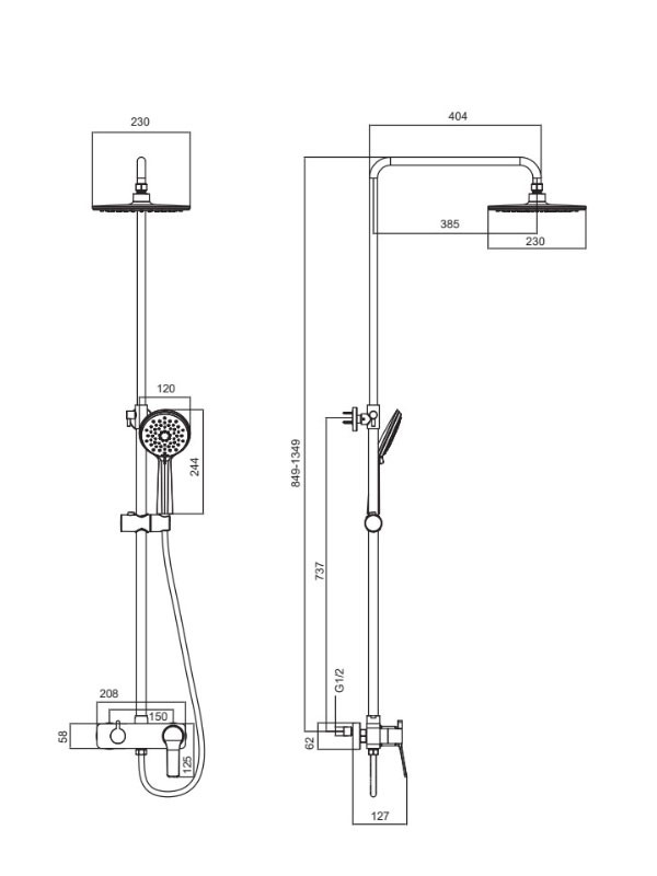 • Μπαταρία σταθερού ντους, κομπλέ με μονό μίκτη