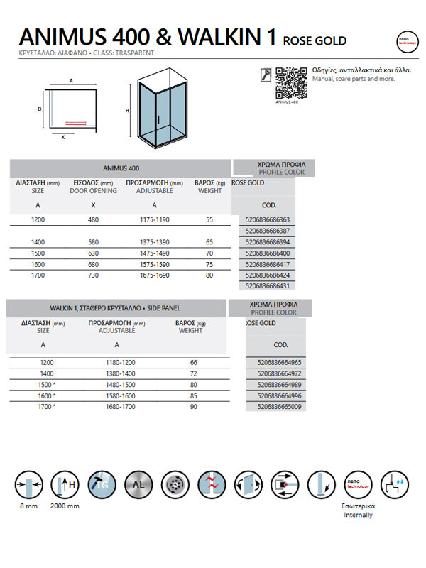 • Η καμπίνα Animus 400 & Walkin 1 Rose Gold προσφέρεται και σε άλλες διαστάσεις με επιλογή