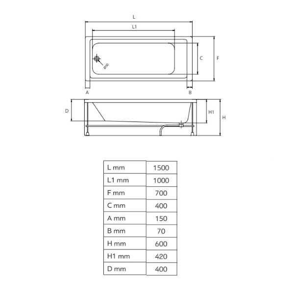 • Μπανιέρα ακρυλική ευθύγραμμη από ακρυλικό φύλλο πάχους 5 mm εξαιρετικά ευχάριστο στην αφή