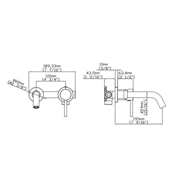 • Μπαταρία εντοιχισμού νιπτήρος ανοξείδωτη χρωμέ