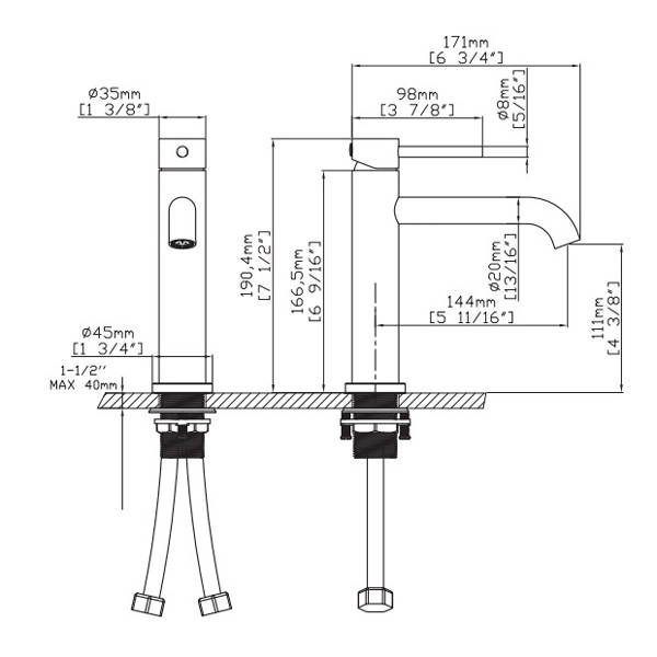 • Μπαταρία νιπτήρος χαμηλή σε inox satinato