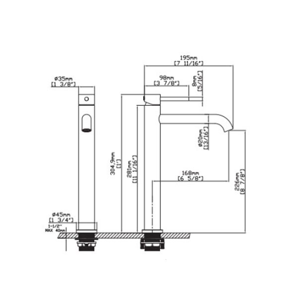 • Νιπτήρος μπαταρία ψηλή πάγκου ανοξείδωτη σε χρυσό