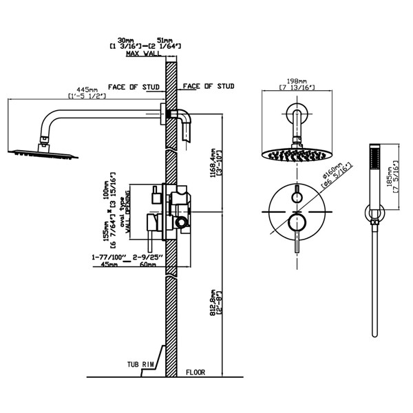 • Μπρούτζινη παροχή ντους & βάση στήριξης
