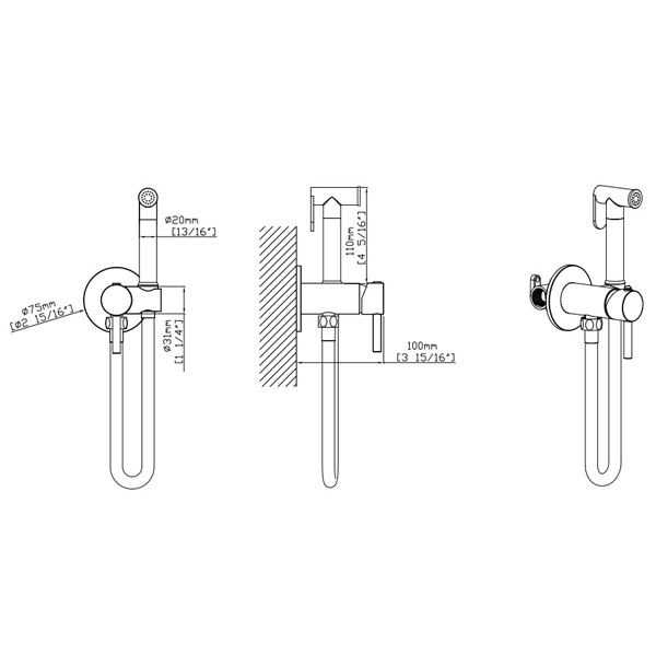• Εντοιχιζόμενος μίκτης ζεστού - κρύου 1 οπής, για πλύση υγιεινής ή καθαρισμό λεκάνης σε inox satinato
