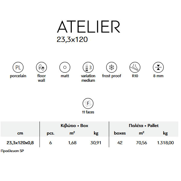 • Πλακάκι δαπέδου εσωτερικού και εξωτερικού χώρου, πορσελανάτο με ματ επιφάνεια, ανθεκτικό στο παγετό