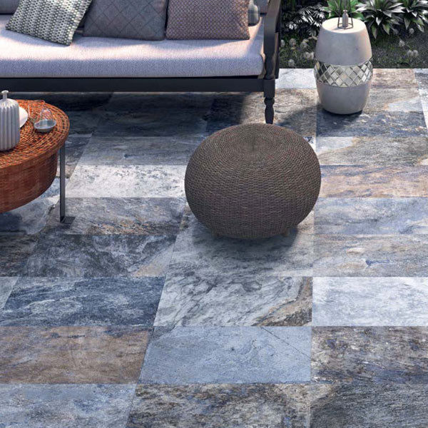 • Πλακάκι εξωτερικού δαπέδου, πορσελανάτο, rectificado, πολλαπλών τόνων με ματ, ανάγλυφη και in / out επιφάνεια
