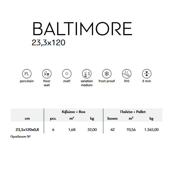 • Πλακάκι δαπέδου εσωτερικού και εξωτερικού χώρου, πορσελανάτο με ματ επιφάνεια, ανθεκτικό στο παγετό