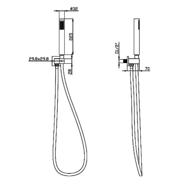 • Επίτοιχη παροχή νερού ορειχάλκινη σε χρώμιο, για σπιράλ ντους και βάση στήριξης τηλεφώνου