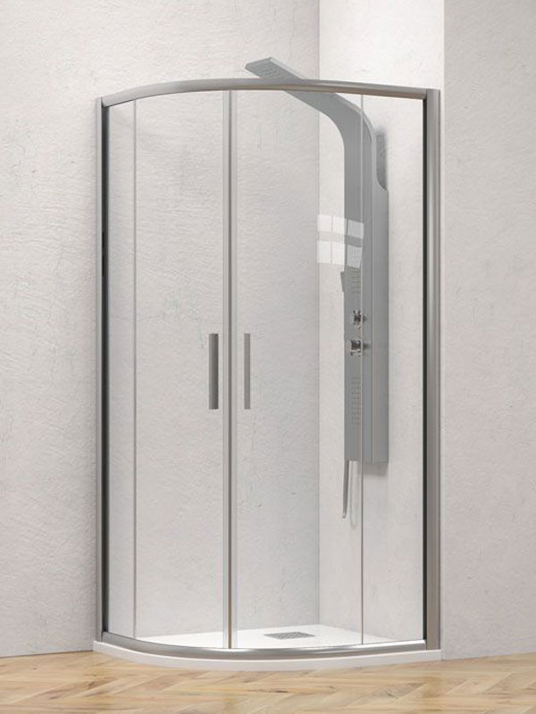• Συρόμενη ημικυκλική καμπίνα γωνιακής τοποθέτησης, με δύο σταθερά φύλλα και δύο συρόμενες πόρτες