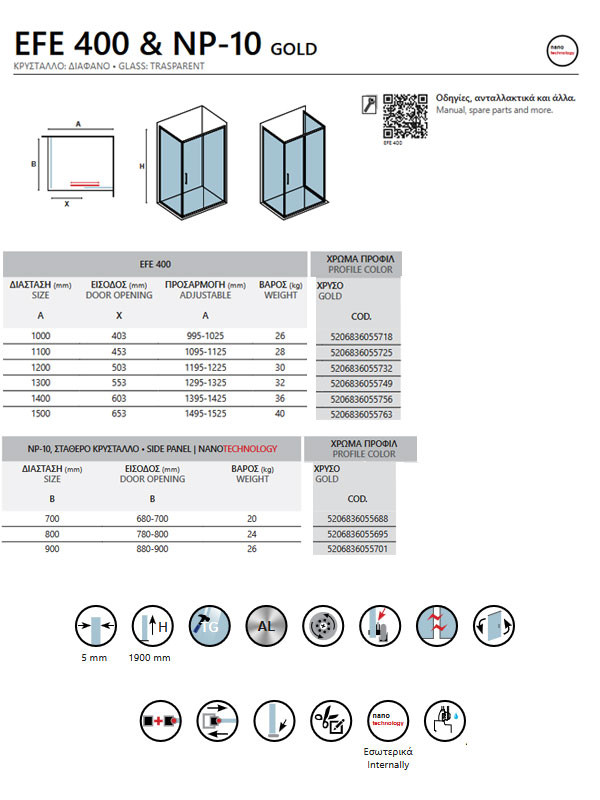 • Η καμπίνα EFE 400 & NP-10 Gold διατίθεται και σε άλλες διαστάσεις με επιλογή