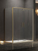 • Ασύμμετρη καμπίνα γωνιακής τοποθέτησης, συρόμενη με τρία σταθερά φύλλα και δύο συρόμενες πόρτες