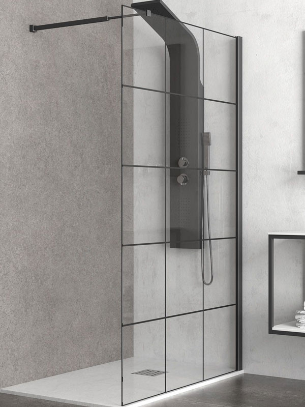 • Διατίθεται με προφίλ ανοδιωμένου αλουμινίου σε μαύρο ματ και κρύσταλλα διάφανα tempered 6 mm
