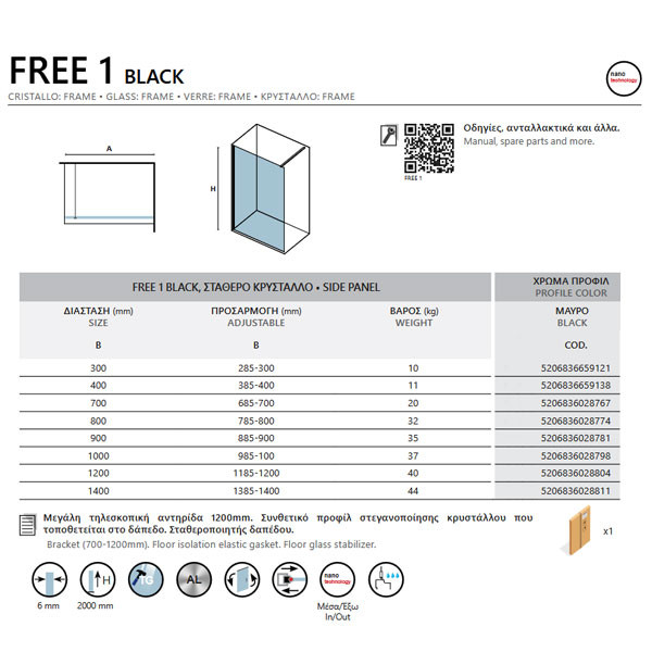 • Η καμπίνα Free 1 Black προσφέρεται και σε άλλες διαστάσεις με επιλογή