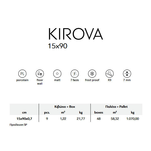 • Πλακάκι δαπέδου εσωτερικού και εξωτερικού χώρου, πορσελανάτο με ματ και αντιολισθητική R9 επιφάνεια