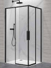 • Τετράγωνη καμπίνα γωνιακής τοποθέτησης βαρέως τύπου, με δύο σταθερά και δύο συρόμενες πόρτες, σε μαύρο