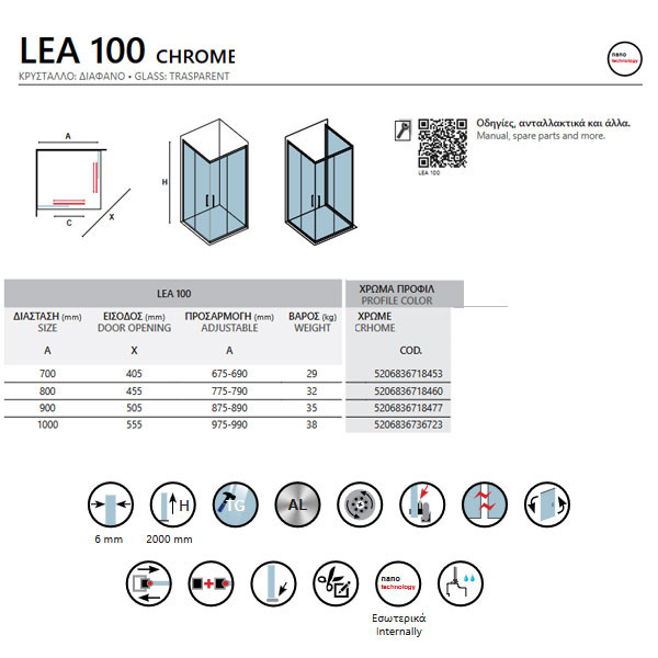 • Η καμπίνα Lea 100 προσφέρεται και σε άλλες διαστάσεις με επιλογή