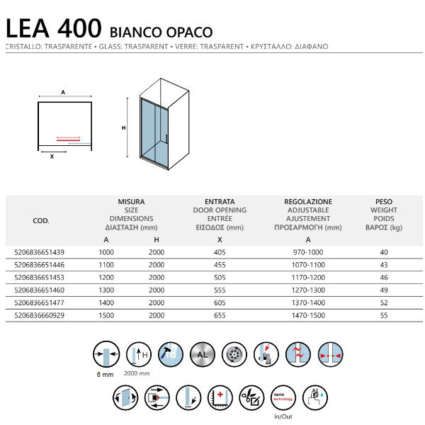 • Η καμπίνα Lea 400 White διατίθεται και σε άλλες διαστάσεις με επιλογή