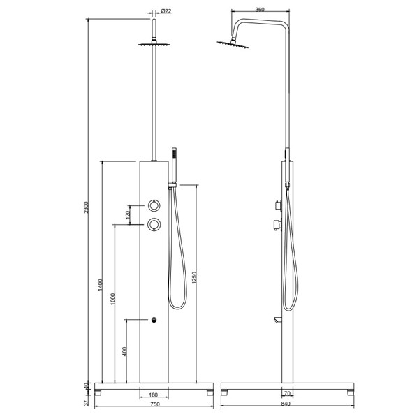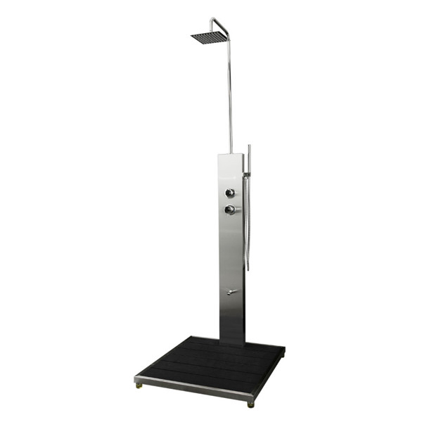 • Περιλαμβάνει: ντουζιέρα ανοξείδωτη S/S 304 με δάπεδο από WPC μαύρο, στήλη ντους ανοξείδωτη S/S 304, ντους οροφής τετράγωνο 20 Χ 20 cm S/S 304, τηλέφωνο χειρός, σπιράλ inox 120 cm, μπρούτζινο επινικελωμένο στόμιο, μονό μίκτη ζεστού - κρύου και διανομέα 3 λειτουργιών