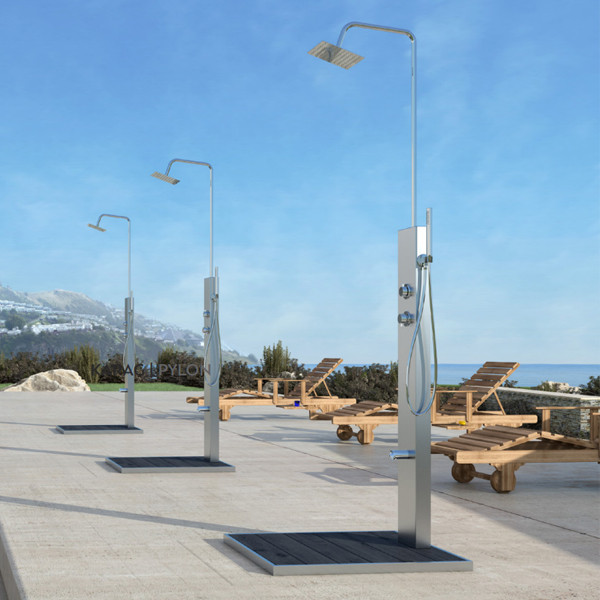 • Στήλη ντους ανοξείδωτη εξωτερικού χώρου με ντουζιέρα, με μείκτη ζεστού - κρύου νερού