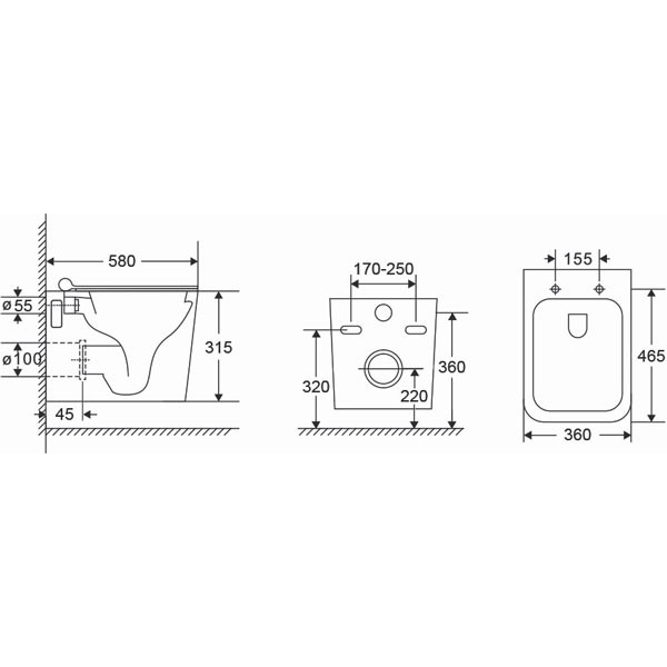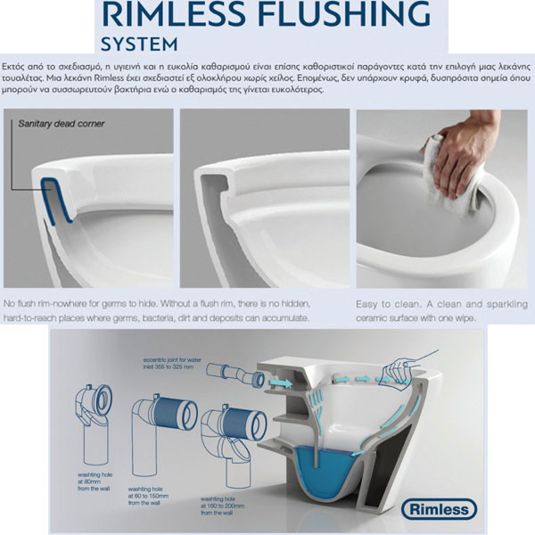 • Λεκάνη κρεμαστή κεντρικής έκπλυσης, με υδροστροβιλισμό και κάλυμμα
