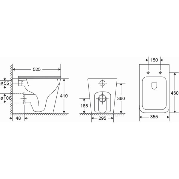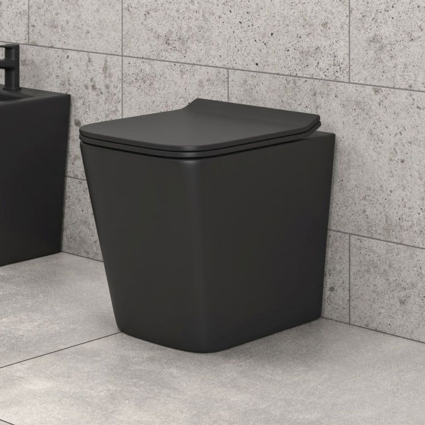 • Λεκάνη δαπέδου υψηλής πιέσεως back to wall (πλήρη εφαρμογή στον τοίχο), κεντρικής έκπλυσης με υδροστροβιλισμό Tornado, με κάλυμμα, σε μαύρο ματ