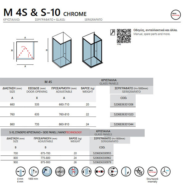 • Η καμπίνα M 4S & S-10 προσφέρεται και σε άλλες διαστάσεις με επιλογή