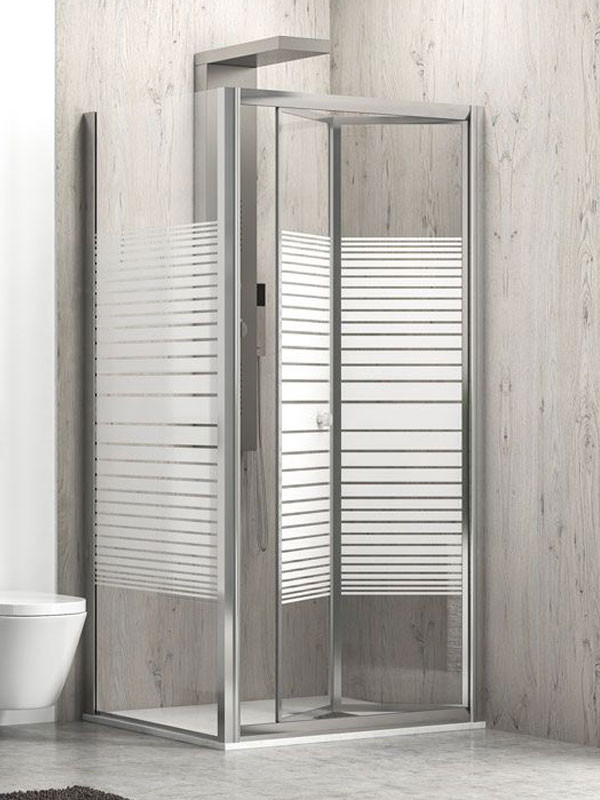 • Τετράγωνη καμπίνα ντουζιέρας με δύο πτυσσόμενα φύλλα 4 mm και επιπλέον πλαϊνό σταθερό S - 10, 6 mm