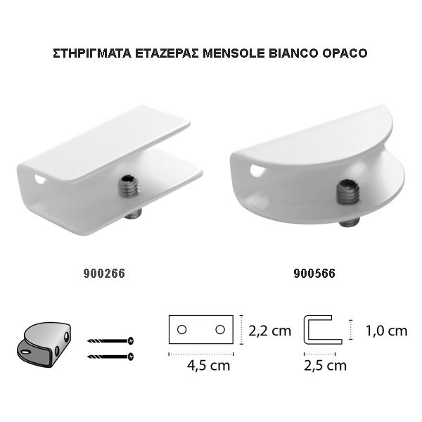• Διατίθονται σετ (2 τεμ) στηρίγματα τοίχου σε λευκό ματ με επιλογή
