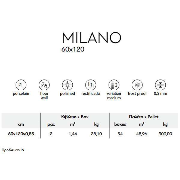 • Πλακάκι εσωτερικού δαπέδου πορσελανάτο, με full lapato γυαλιστερή επιφάνεια, rectificado, πολλαπλών τόνων