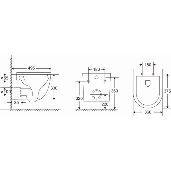 • Λεκάνη κρεμαστή κεντρικής έκπλυσης, με υδροστροβιλισμό και κάλυμμα σε λευκό ματ