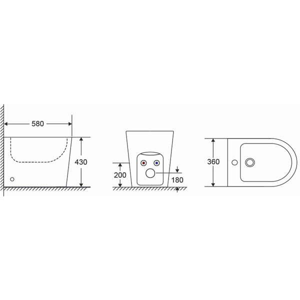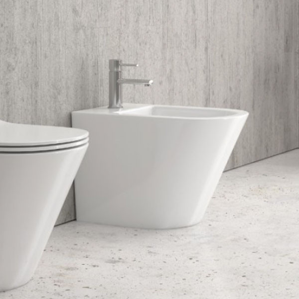 • Μπιντέ δαπέδου back to wall (πλήρη εφαρμογή στον τοίχο) χρώματος λευκό γυαλιστερό