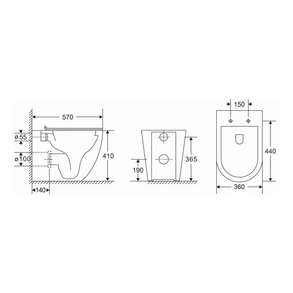 • Λεκάνη δαπέδου υψηλής πιέσεως back to wall (πλήρη εφαρμογή στον τοίχο) με κάλυμμα, χρώματος μαύρο ματ