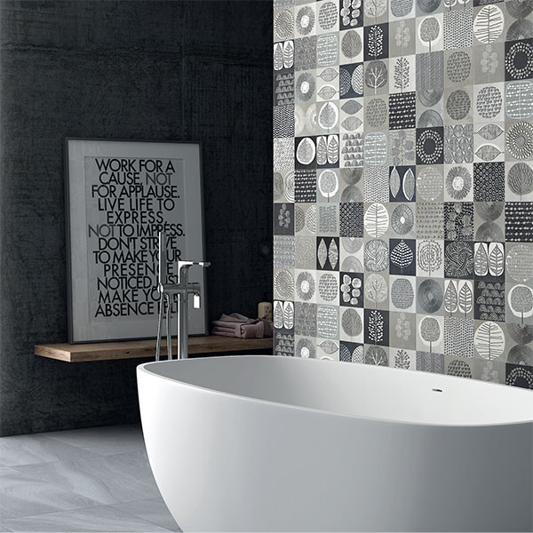 • Πλακάκι μπάνιου πορσελανάτο με ματ επιφάνεια, πολλαπλών τόνων και μικτών παραστάσεων