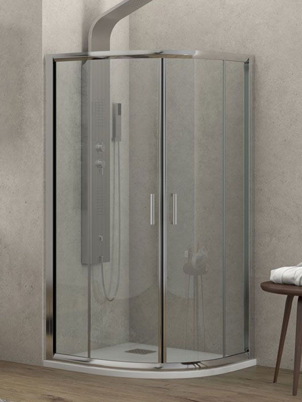 • Καμπίνα ημικυκλικής ντουζιέρας με δύο σταθερά φύλλα και δύο συρόμενες πόρτες