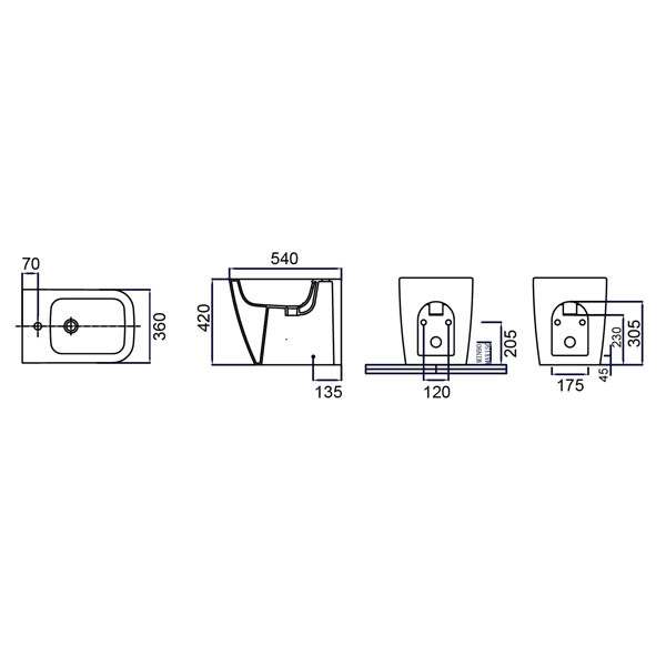 • Μπιντέ δαπέδου back to wall (πλήρη εφαρμογή στον τοίχο)