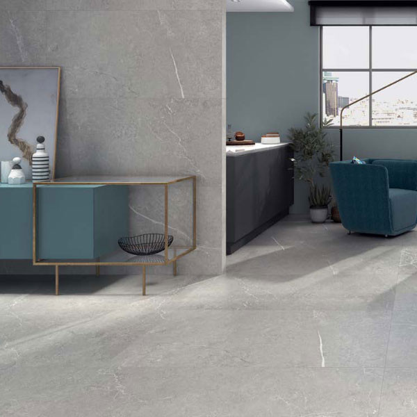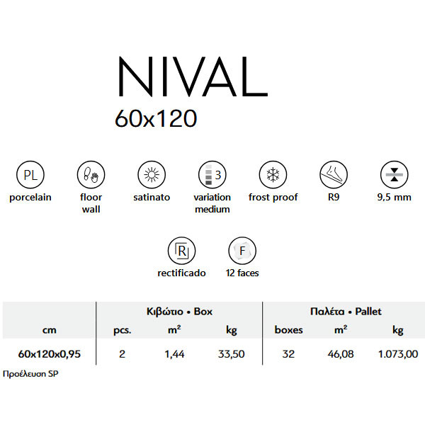• Πλακάκι εσωτερικού δαπέδου πορσελανάτο, με σατινέ επιφάνεια, rectificado, πολλαπλών τόνων