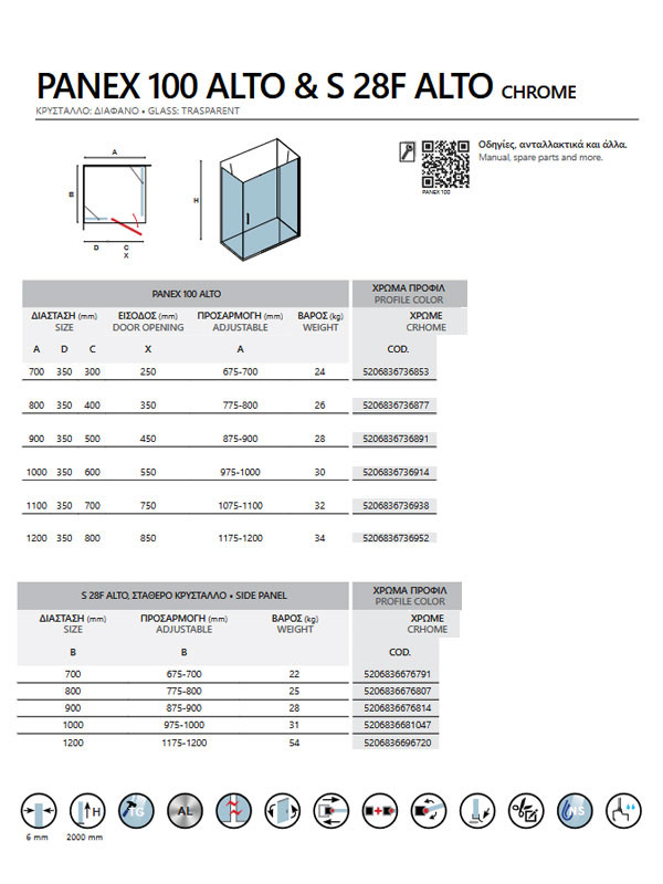 • Η καμπίνα Panex 100 Alto & S 28F Alto διατίθεται και σε άλλες διαστάσεις με επιλογή