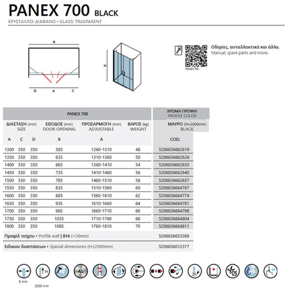 • Η καμπίνα Panex 700 Black προσφέρεται και σε άλλες διαστάσεις με επιλογή