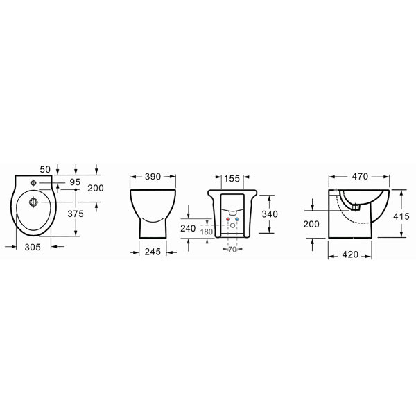 • Μπιντέ δαπέδου back to wall (πλήρη εφαρμογή στον τοίχο)