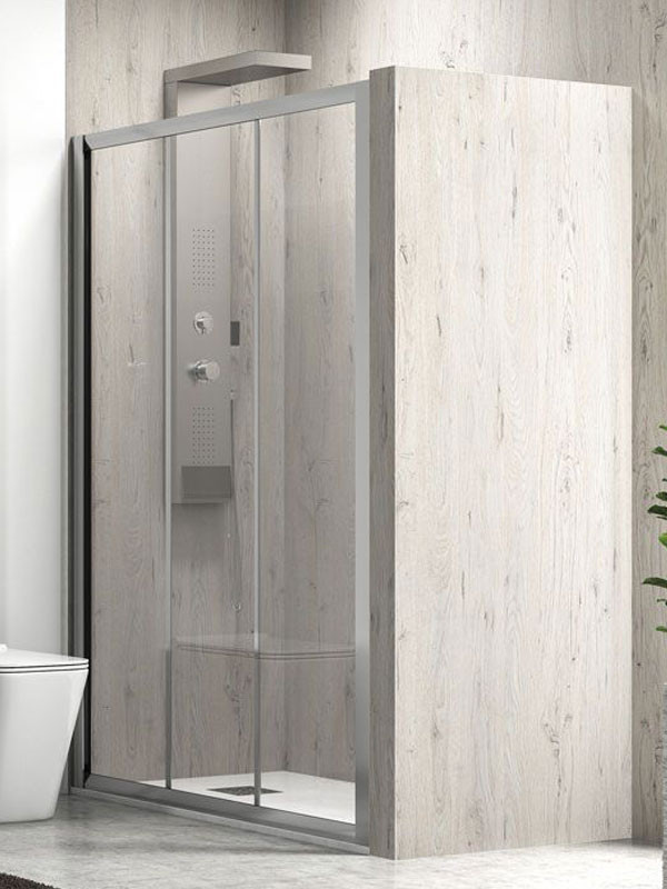 • Ευθύγραμμη καμπίνα κάλυψης μεγάλων επιφανειών από τοίχο σε τοίχο, με ένα σταθερό φύλλο και δύο επάλληλα συρόμενα φύλλα
