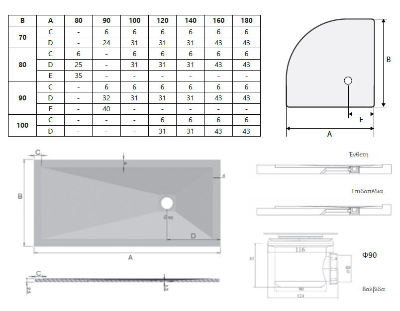 • Συνοδεύεται πάντοτε με βαλβίδα αποχέτευσης με ανοξείδωτη σχάρα η οποία περιλαμβάνεται στην τιμή